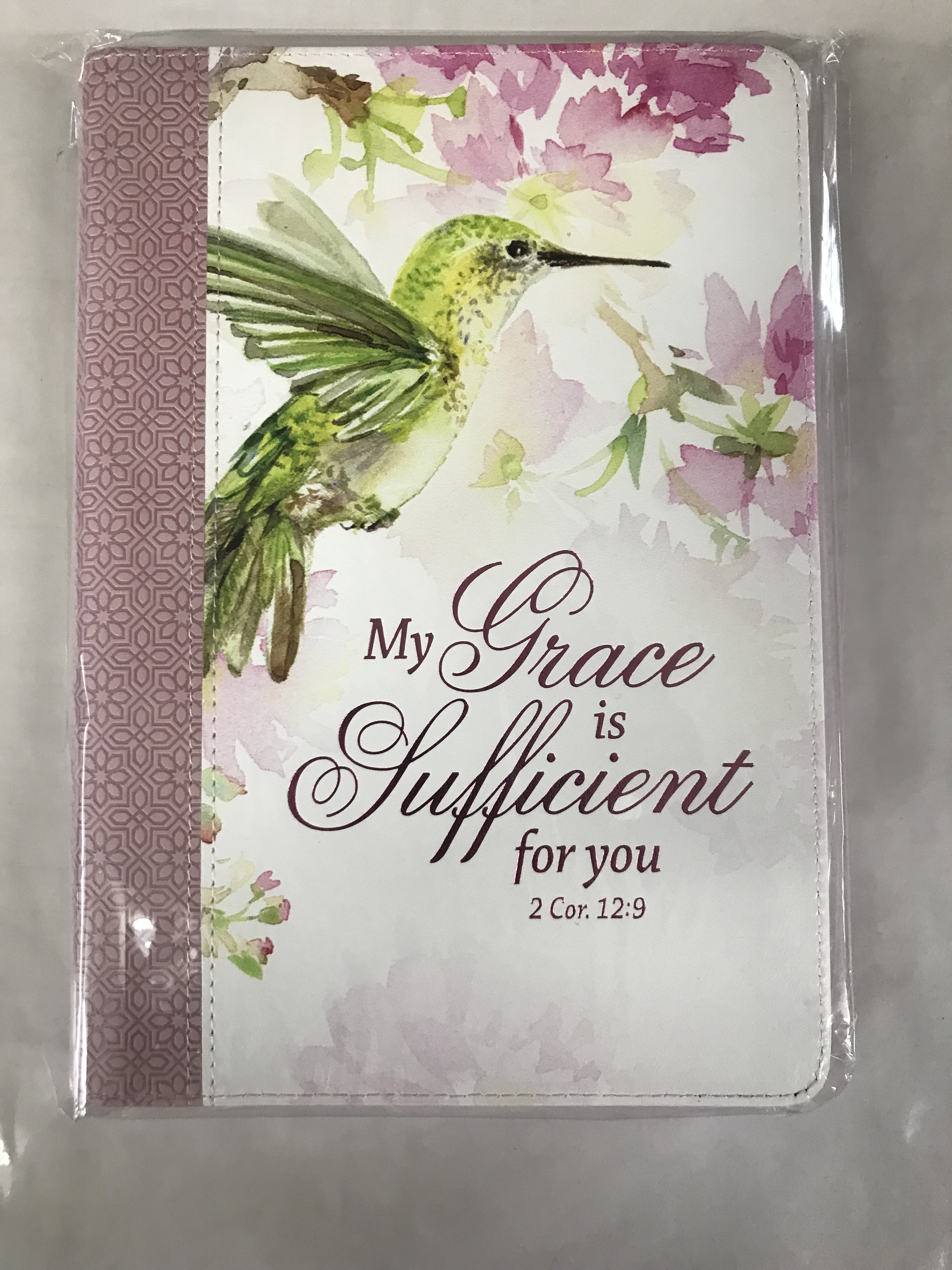 My Grace is Sufficient Hummingbird Pink Classic Journal with Zipper Closure – 2 Corinthians 12:9