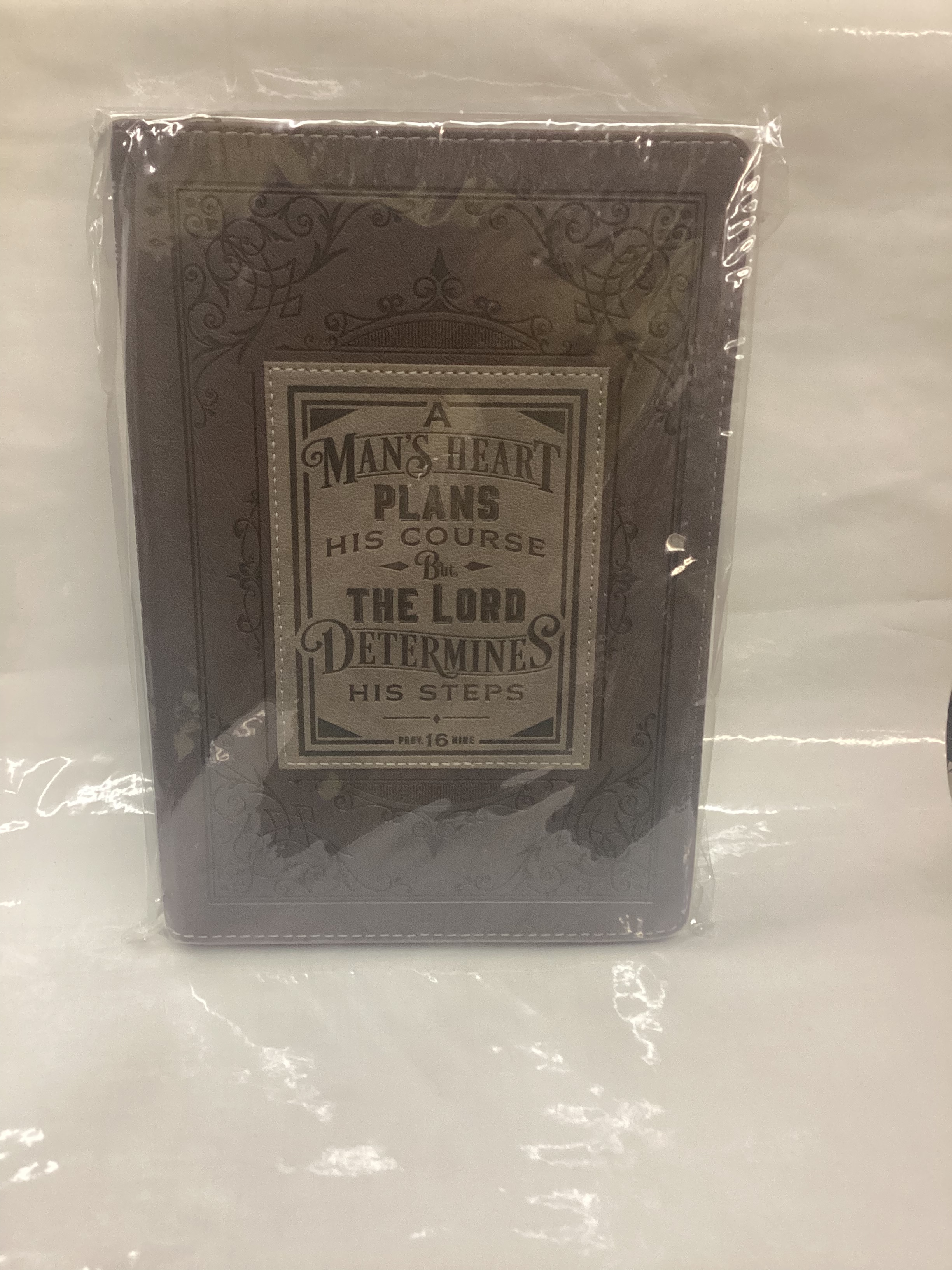 A Man’s heart plans his course But the lord Determines his steps -brown and Espresso Faux Leather Journal with Zipper Closure – 1 Timothy 6:11
