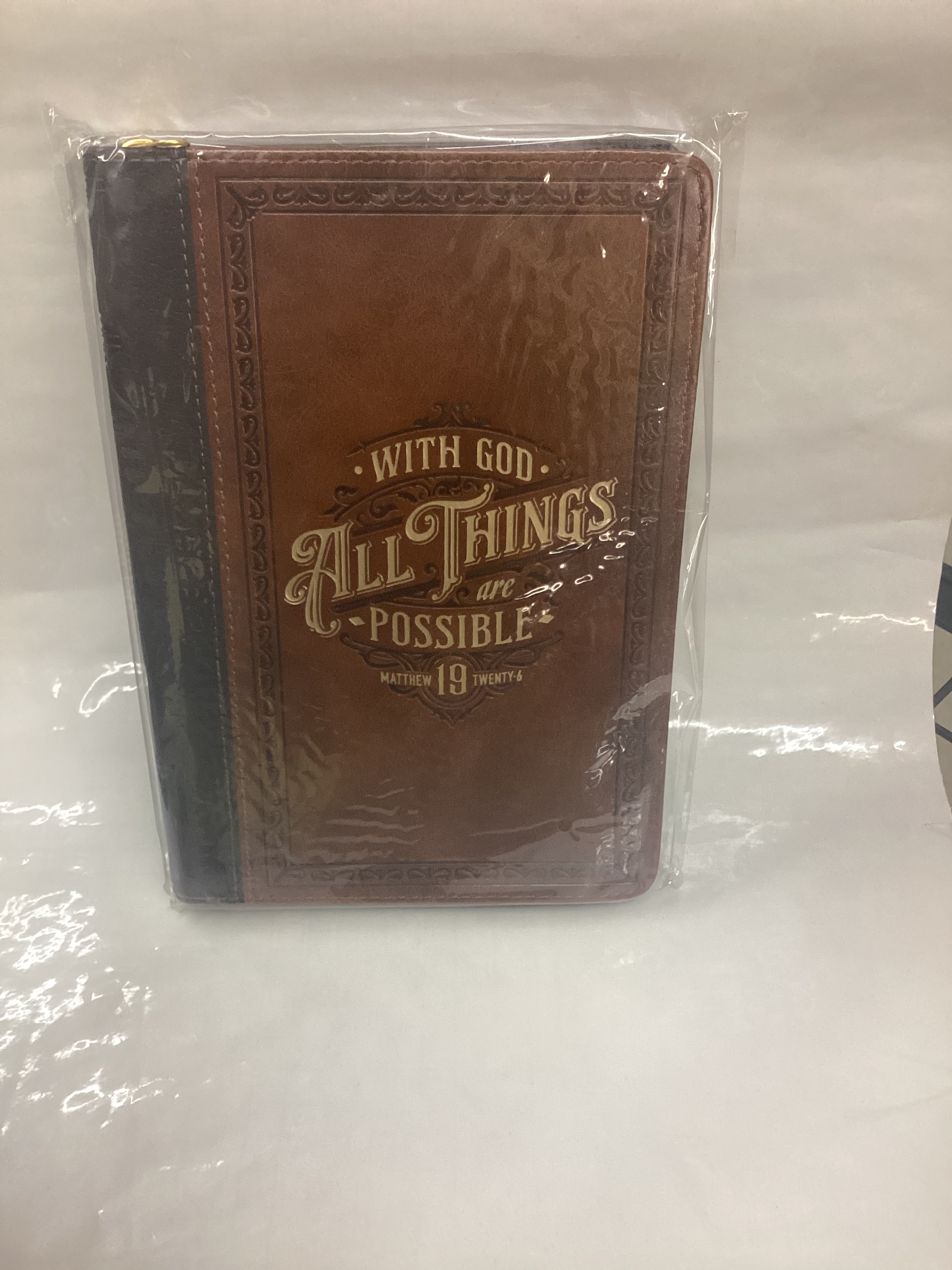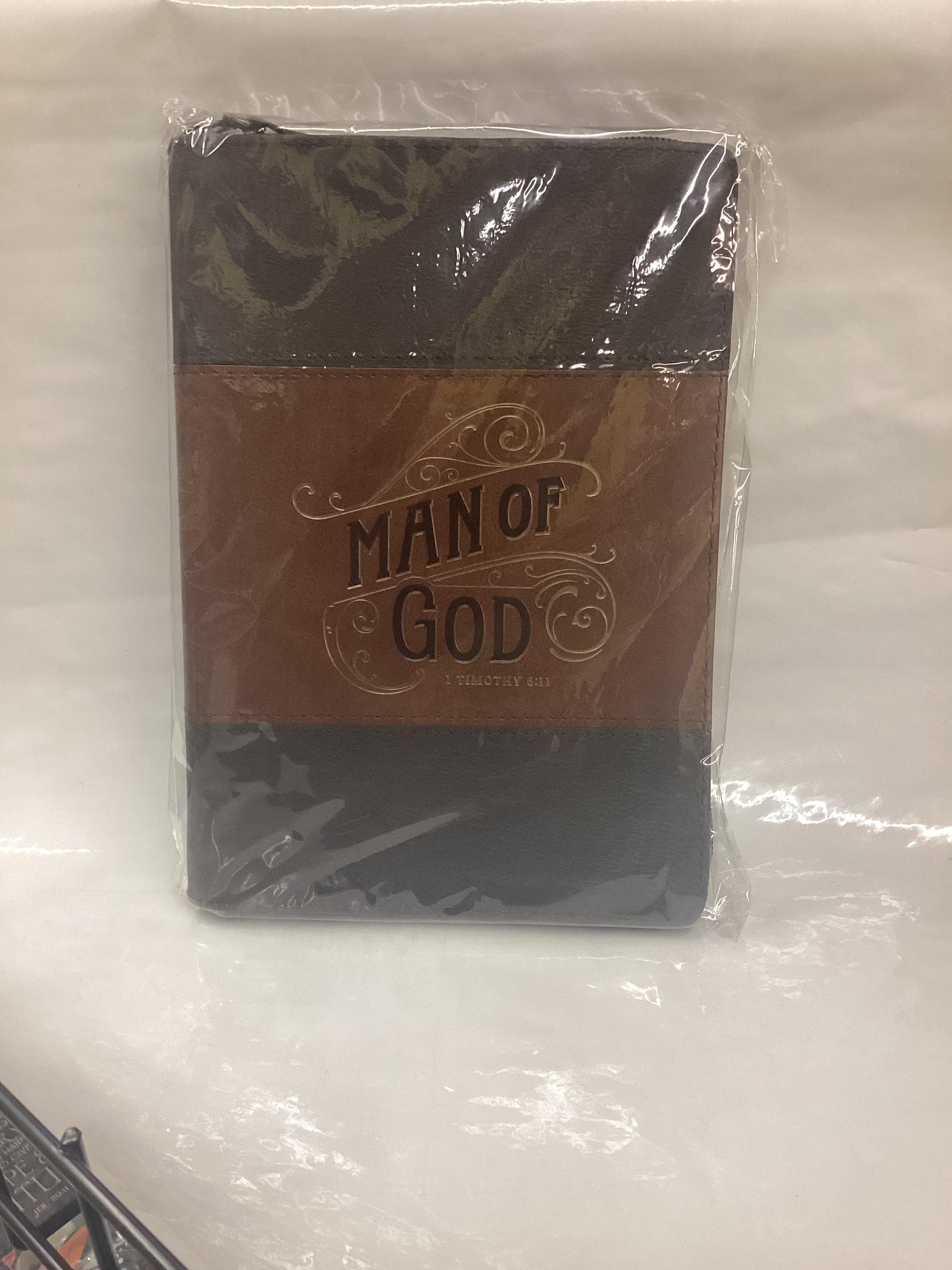 Man of God Honey-brown and Espresso Faux Leather Journal with Zipper Closure – 1 Timothy 6:11