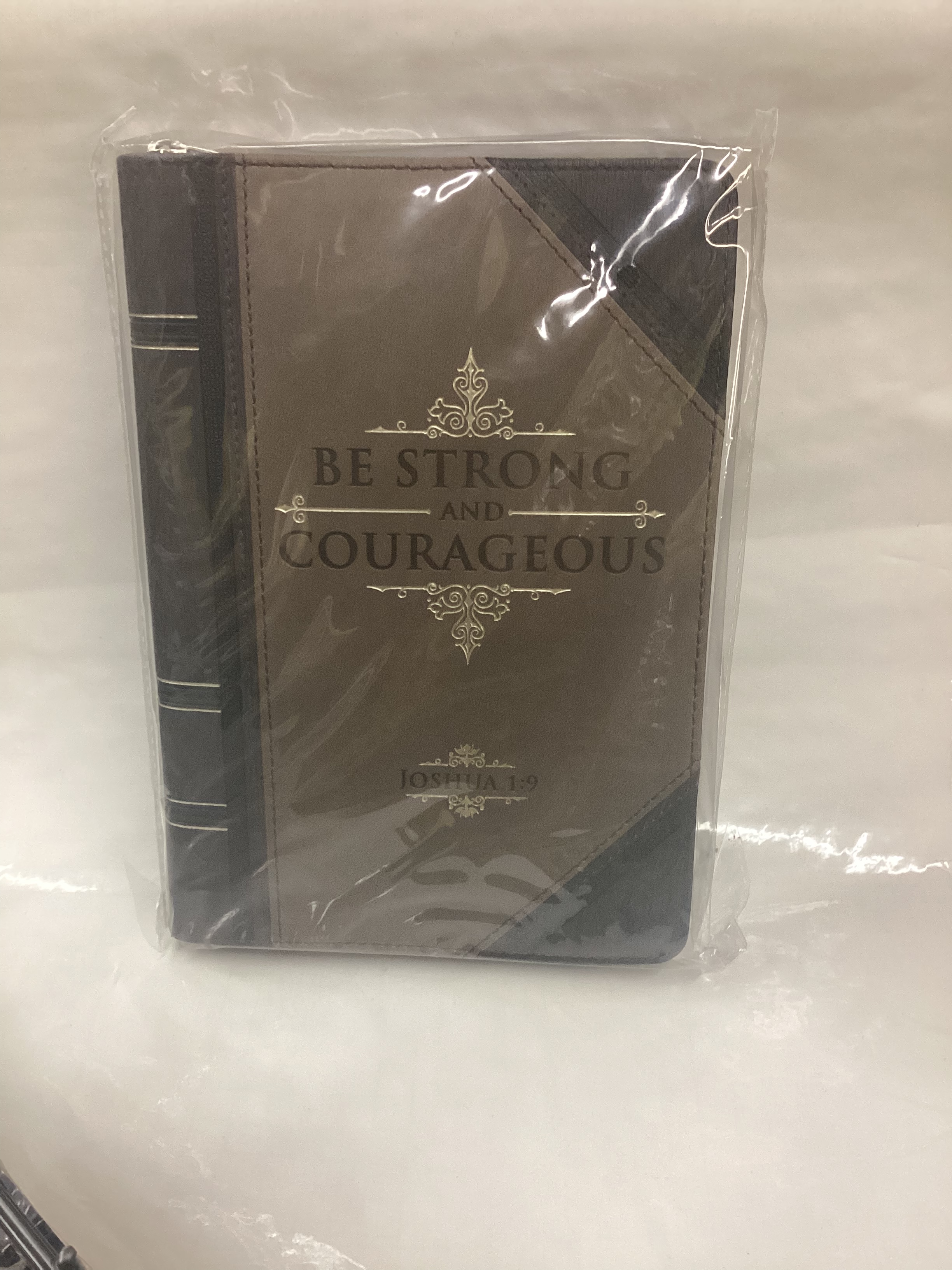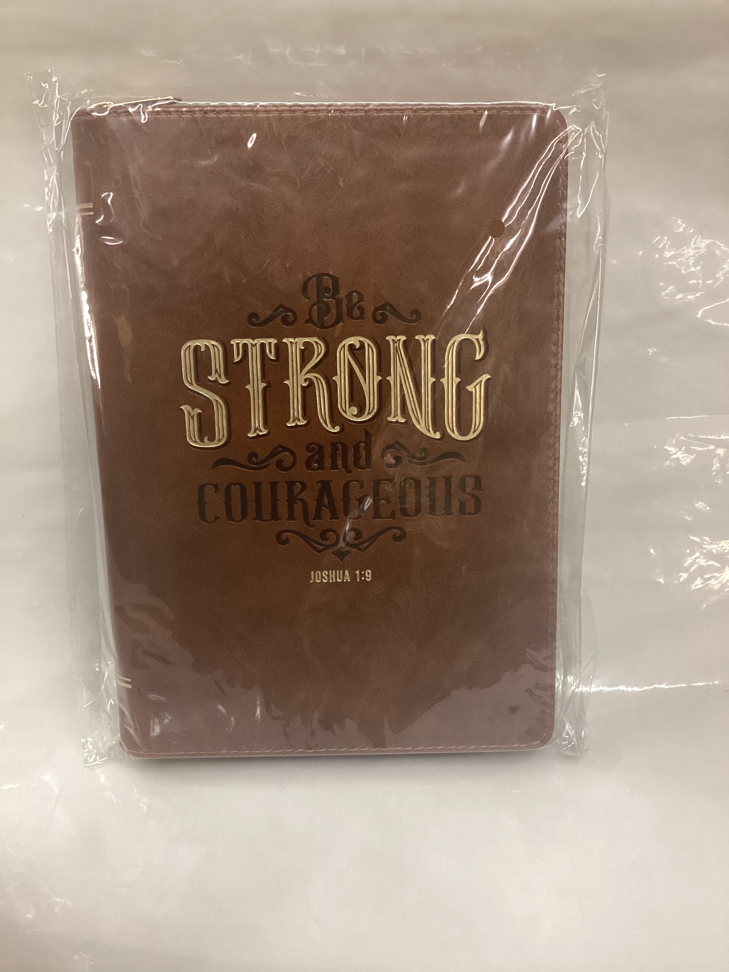 Strong and Courageous Walnut-Brown and Tan Faux Leather Classic Journal with Zipper Closure – Joshua 1:9