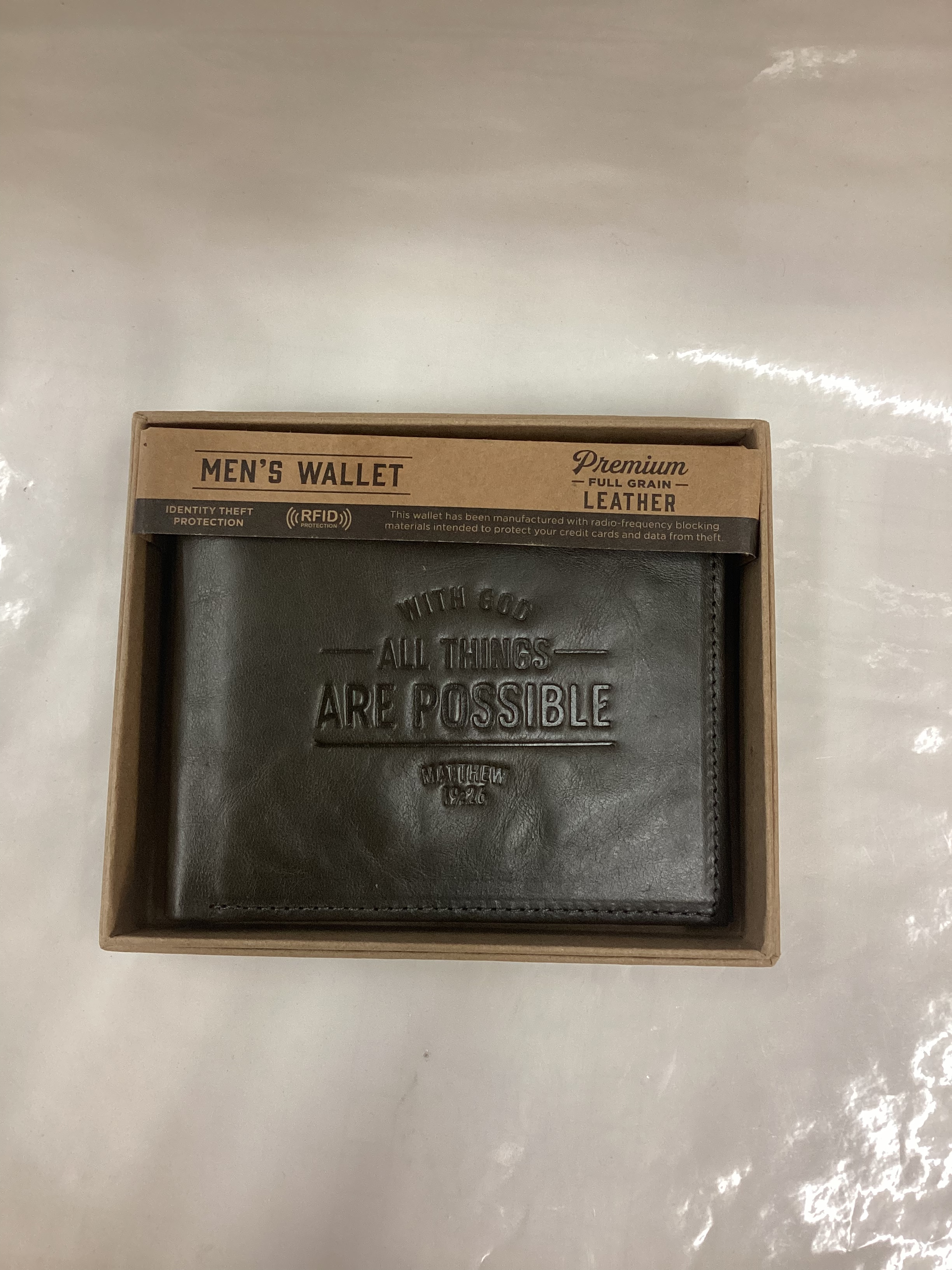 With God All Things Are Possible Brown Genuine Leather Wallet – Matthew 19:26