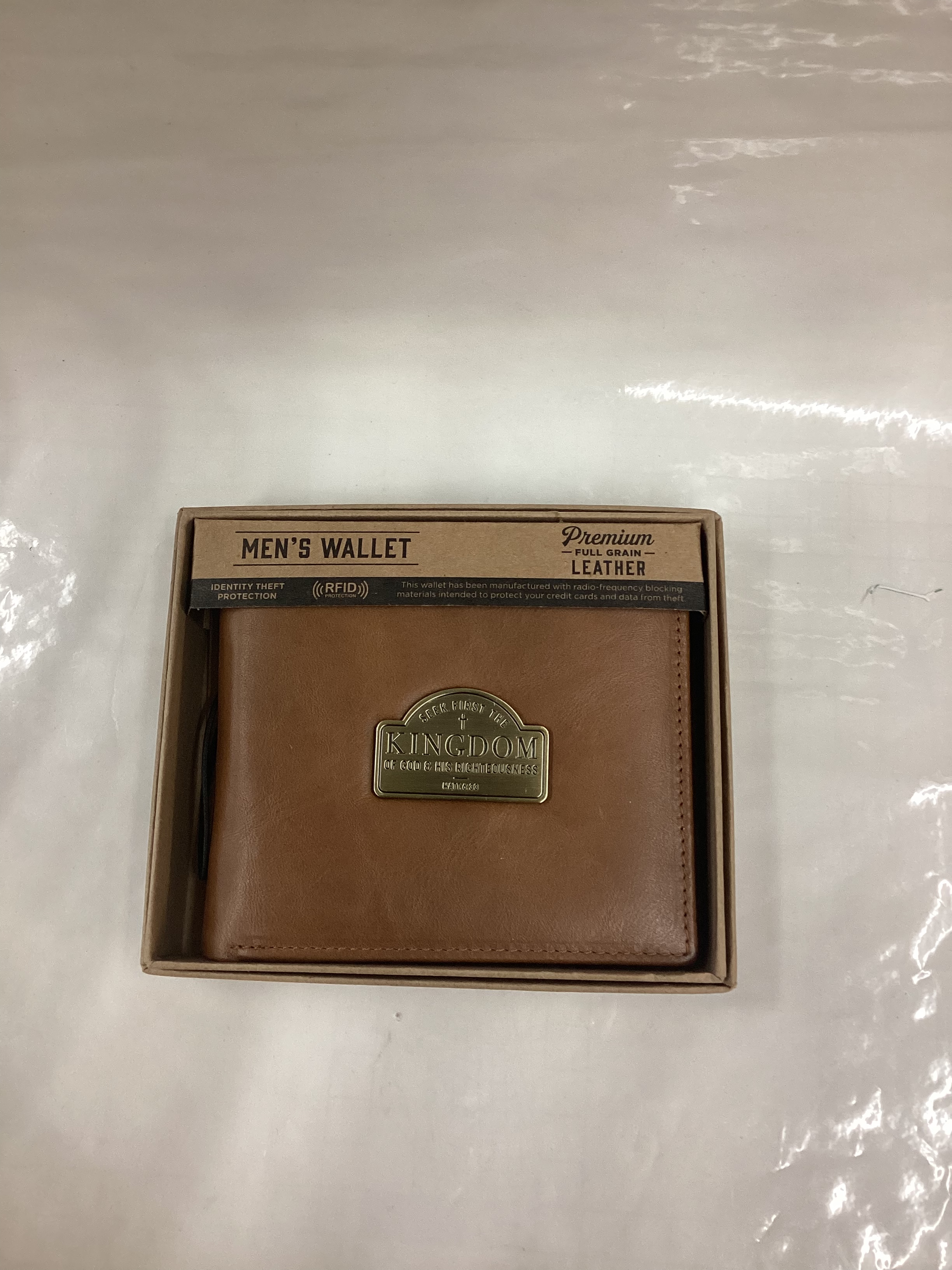 Seek First the Kingdom Saddle Tan Genuine Leather Wallet – Matthew 6:33